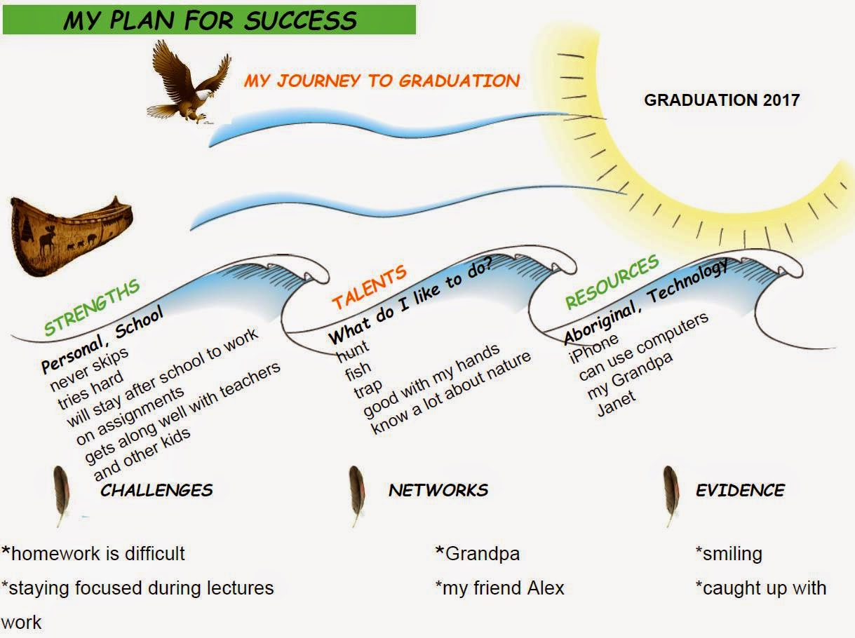 It starts with laying out a proposed learning plan in Grade 9 for each student. Kim (and often an Aboriginal Support Worker) sat one on one with students at the computer, and typed the proposed steps in the learning journey as the student described their plans. Not only does this give the student something tangible to refer to when thinking about their future, but as Kim pointed out, it’s also a good step in getting to know the students as people – especially what they hope and dream for the future. When students enter secondary school this coming September, they will have access to their plan electronically, and can make changes and additions as their interests/goals/learning needs change. Throughout their time in secondary school, the document will be a way for them to plan for their dual credit, apprenticeships, work experience, university transfer, scheduling for post-secondary requirements, etc.